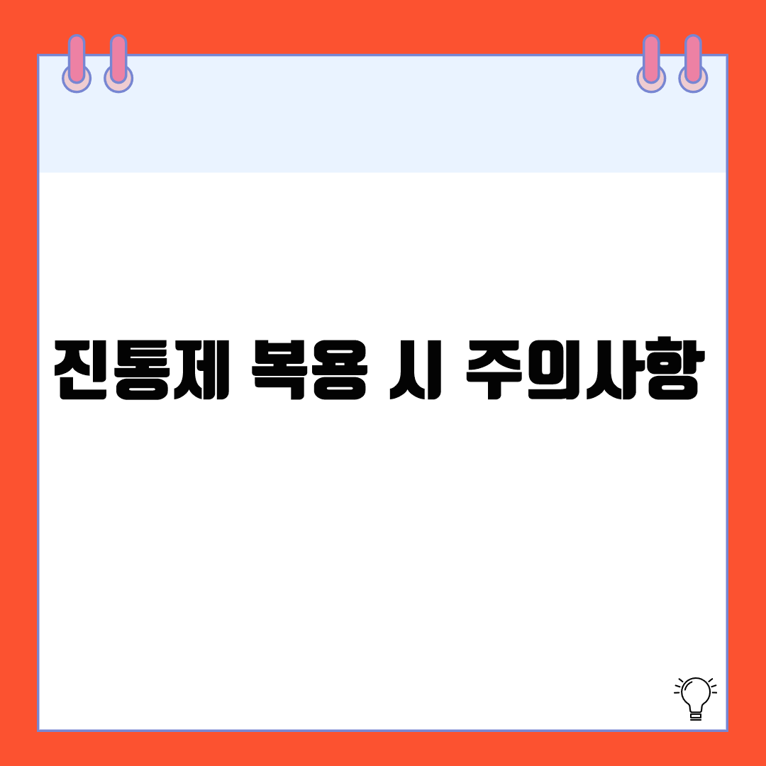 - 진통제 복용법을 잘 지키지 않으면 알레르기 반응이나 약물 오남용 문제가 발생할 수 있습니다.